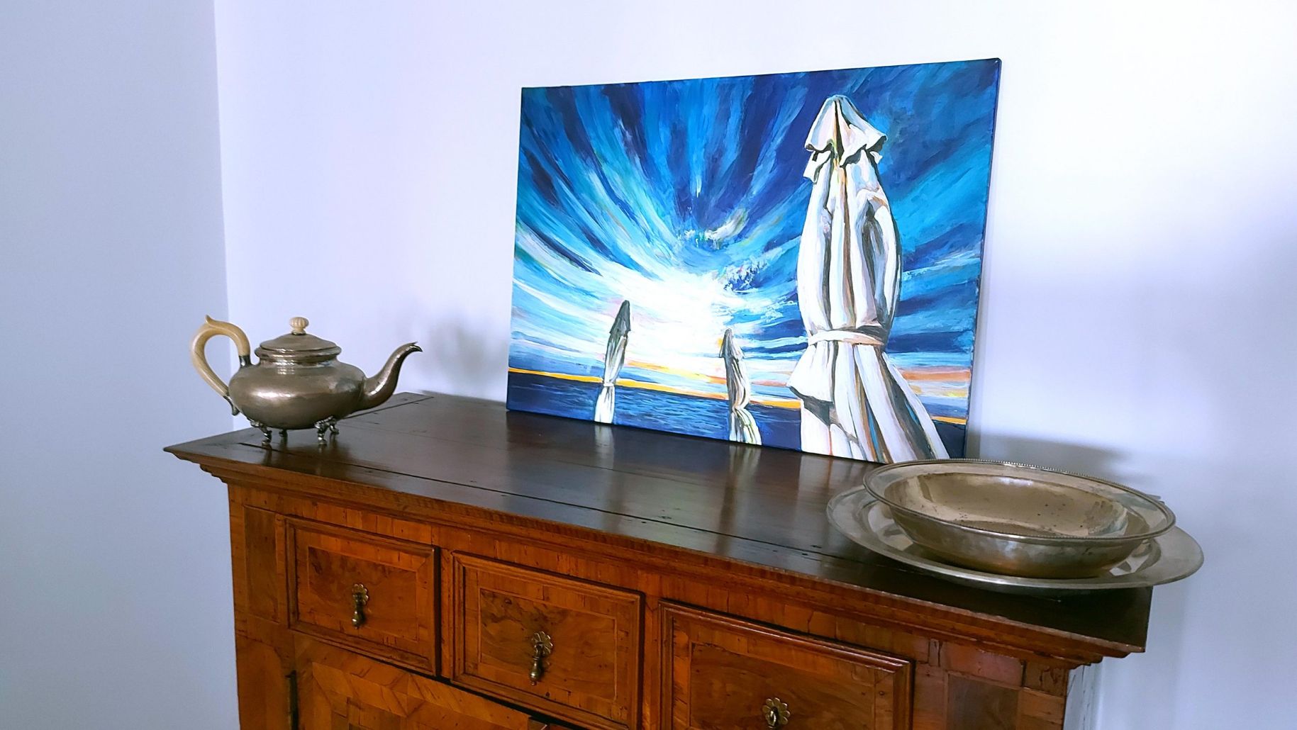 Carica una foto del tuo ambiente, inserisci l'altezza della parete e visualizza questa opera con le proporzioni reali all'interno della tua stanza. In alternativa puoi visualizzare l'opera attraverso foto già precaricate.  _________________________